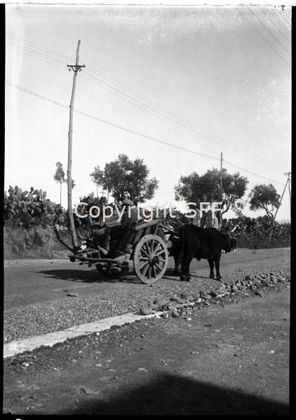 - Carro da carico a due ruote; nella zona posteriore è collocata una stuoia arrotolata, realizzata per lo più in giunco, in canna o in verbasco, che all'occorrenza veniva srotolata e fungeva da copertura al carro stesso