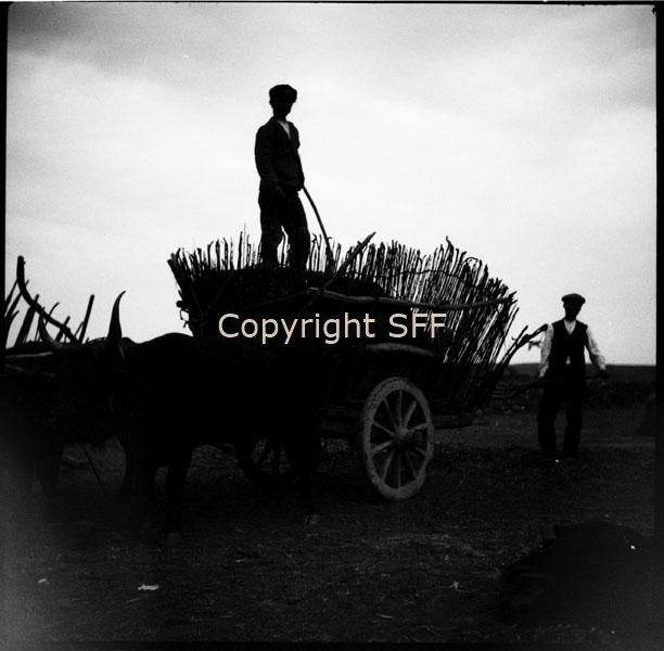 - Carro da carico a due ruote munito di un cestone (cerda) costruito con materiale vegetale, di solito canna o giunco, utilizzato come contenitore per diversi tipi di carico. In questo caso trasporta paglia