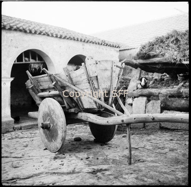 - Carro da carico a due ruote con sponde laterali e cassone in legno sul piano di carico