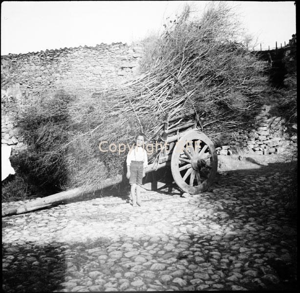 Carro da carico a due ruote con sponde laterali; in questo caso trasporta fascine