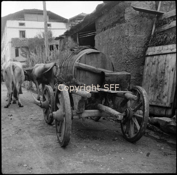 Trasporta una botte in legno con concime liquido recuperato dalle latrine