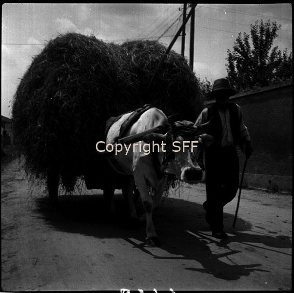 Carro di fieno tirato da un bovino