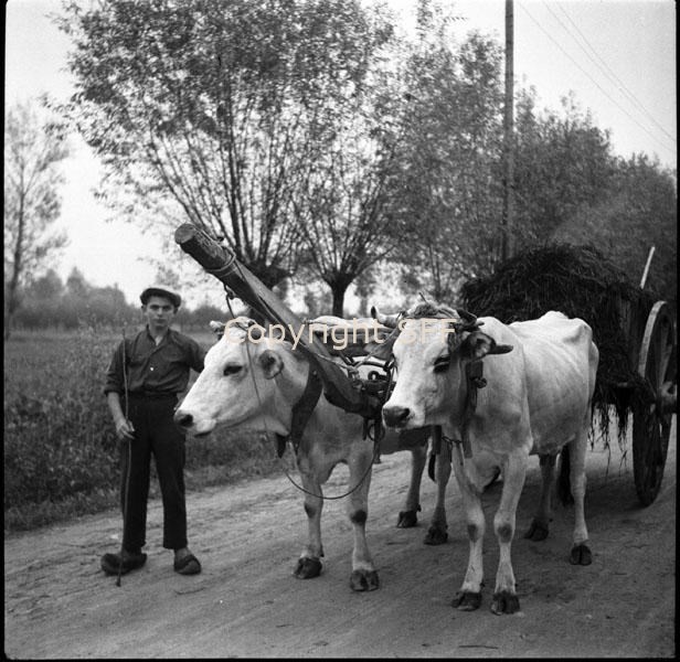 Carro tirato da bovini: giogo, timone, attacco al traino
