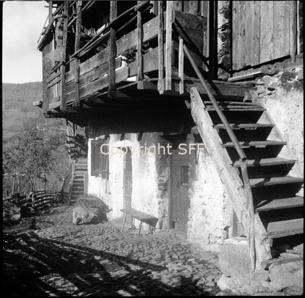 Casa a San Felice di Fierozzo: ballatoio, scala e panca