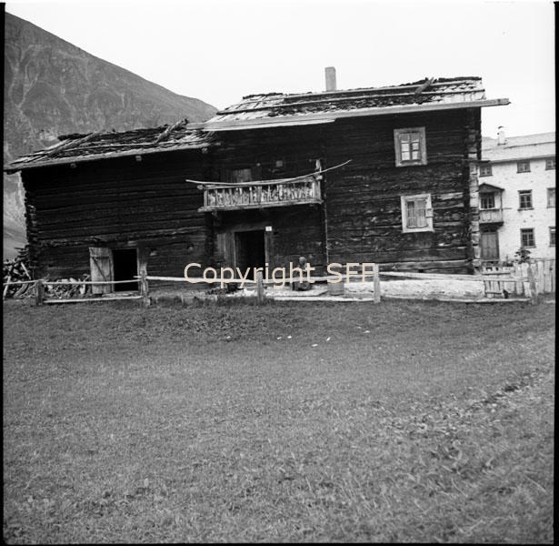 Casa in legno; a sinistra: stalla-fienile in legno