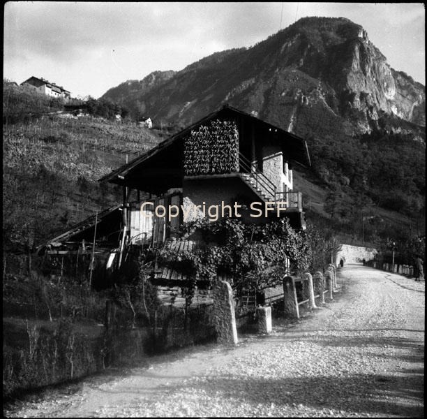 Casa in muratura con ballatoio esterno in legno poco fuori dal paese