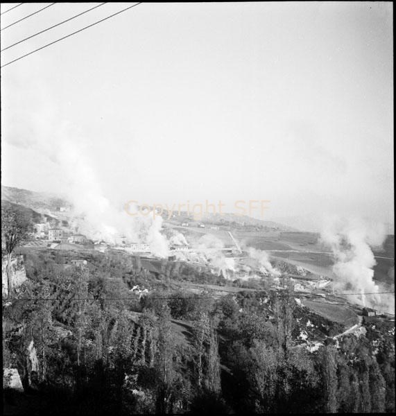 Paesaggio nei pressi del paese; si evidenziano sullo sfondo le fumate legate ai soffioni boraciferi