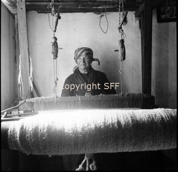 Telaio in legno e ritratto della tessitrice