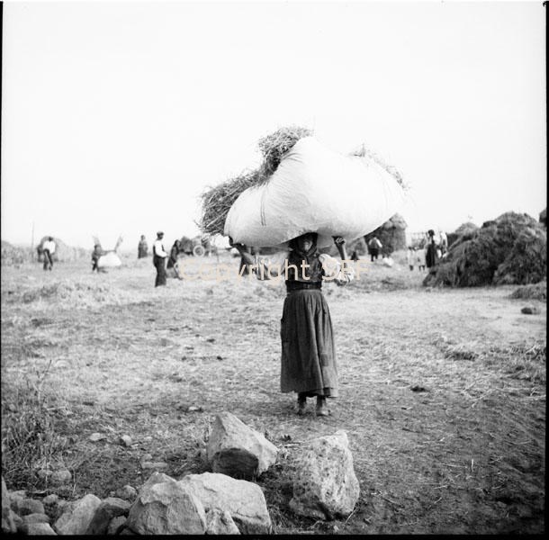 - Donna che porta sulla testa un carico di paglia trattenuto da un lenzuolo