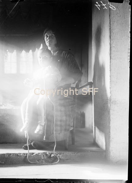 Donna con bambino e spola per la tessitura
