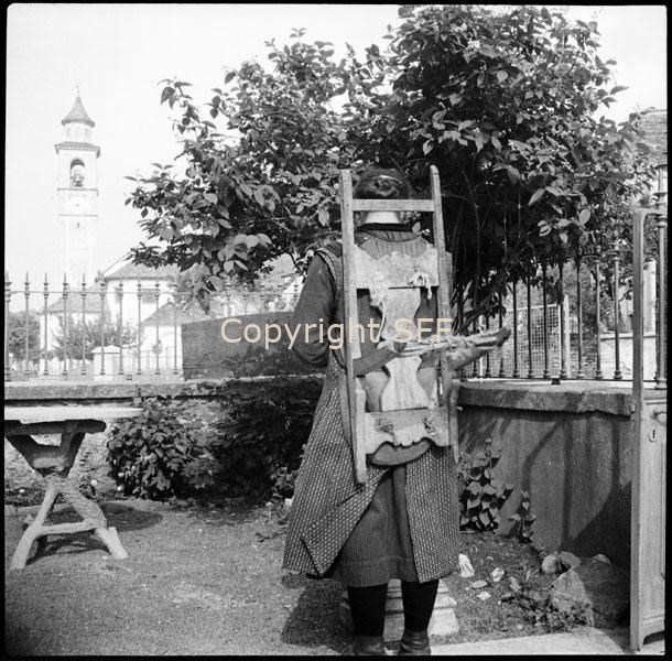Donna di spalle con gerlino da legna