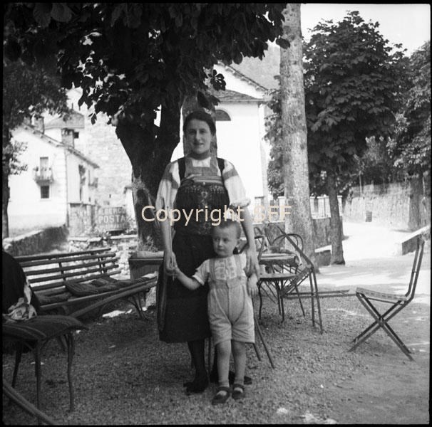 Donna e bambino in costume locale a Fobello