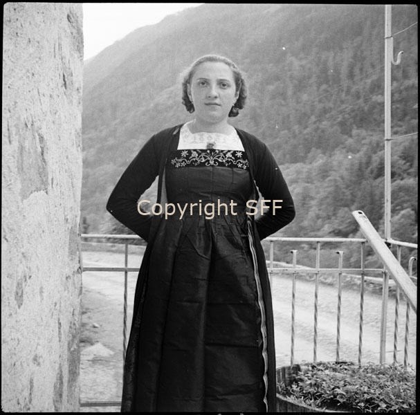 Donna in costume festivo a Ceppo Morelli: particolare
