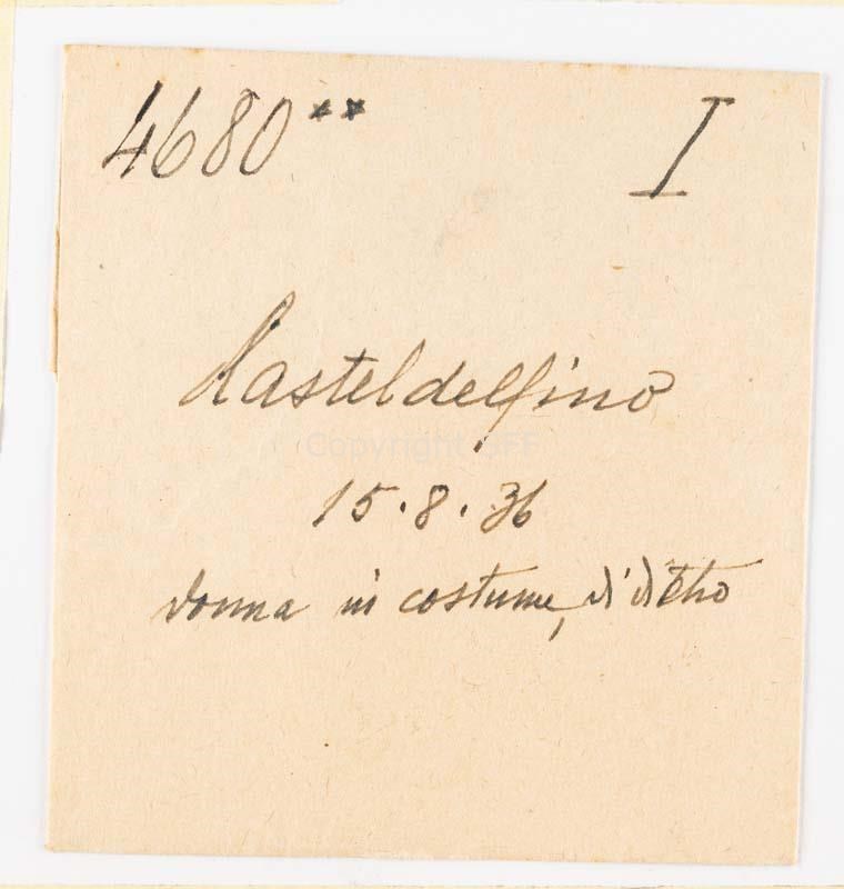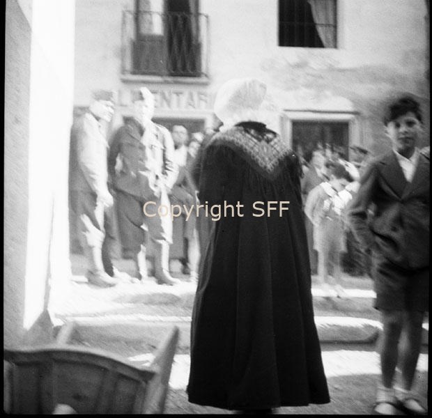 Donna in costume festivo ripresa di spalle a Casteldelfino