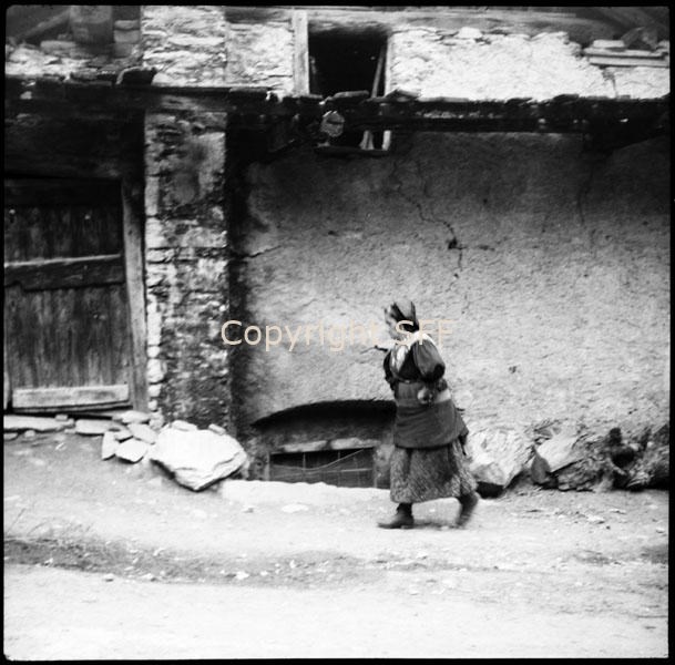 Donna in costume quotidiano a La Ruà di Pragelato