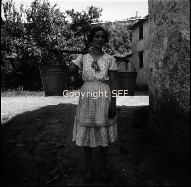 Donna in posa con arcuccio e secchi