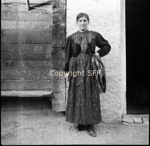 Donna in posa in costume festivo a Livigno: ripresa di fronte