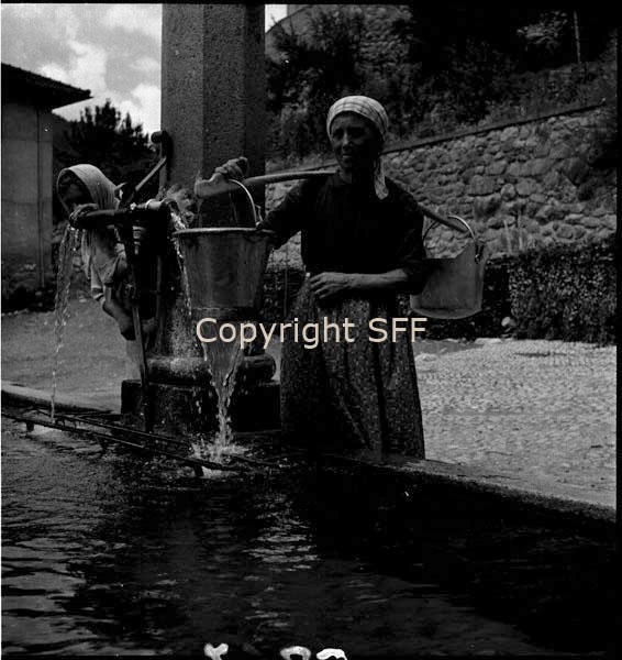 Donne alla fontana: la madre di un informatore con arcuccio e secchi di due tipi