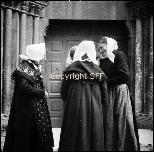 Ritratto di donne che indossano il costume festivo all'uscita dalla messa domenicale