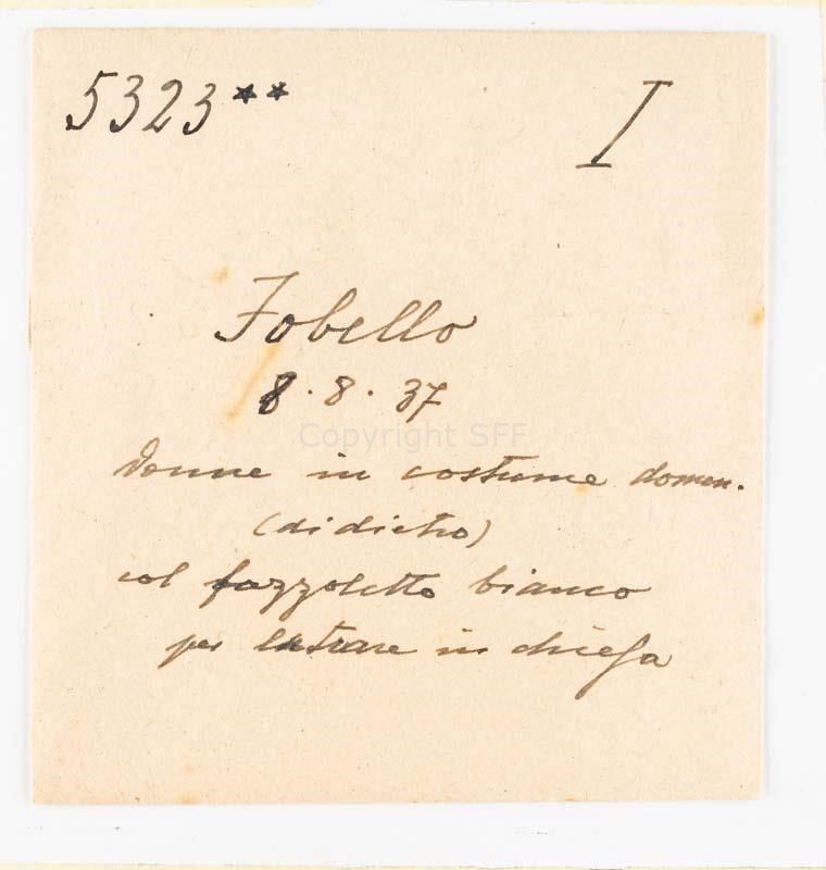 Donne in costume festivo riprese di spalle: a capo coperto per assistere alla messa