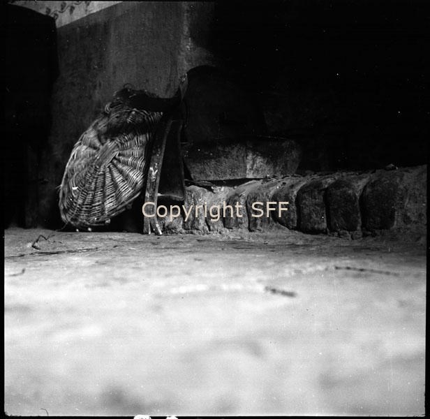 - Focolare in muratura; a terra tafferia per polenta in vimini