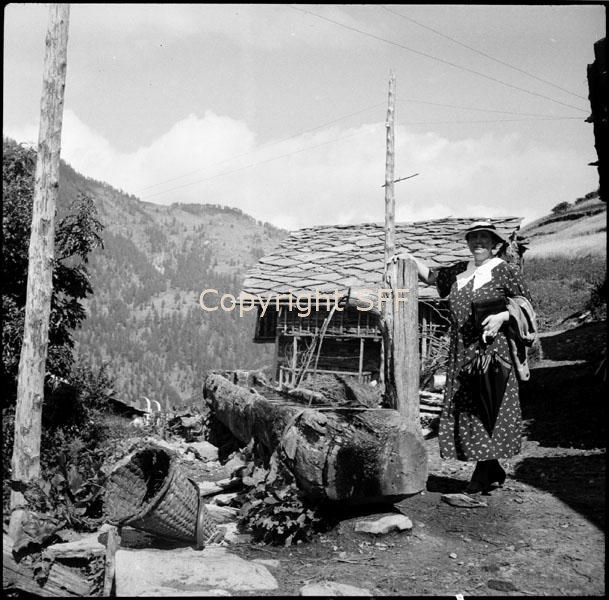 Fontana con vasca scavata nel tronco a Indritti di Prali