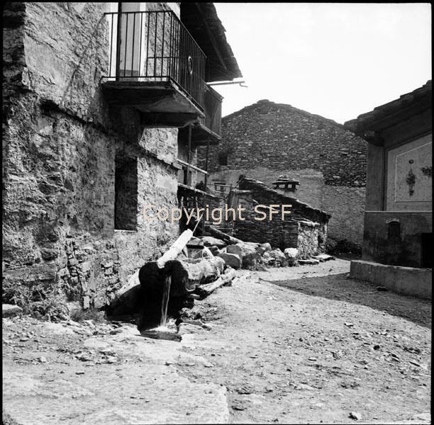 Fontana con vasca scavata nel tronco in Borgata Bertines a Casteldelfino