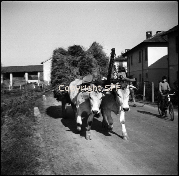 Giogo per bovini con tavolette: carro carico di riso