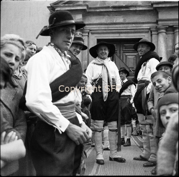 Giovani in costume a uno sposalizio a Bormio: rito tradizionale della “séra”