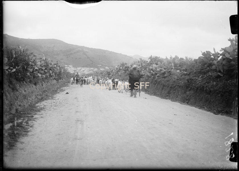 Gruppo di capre con pastore