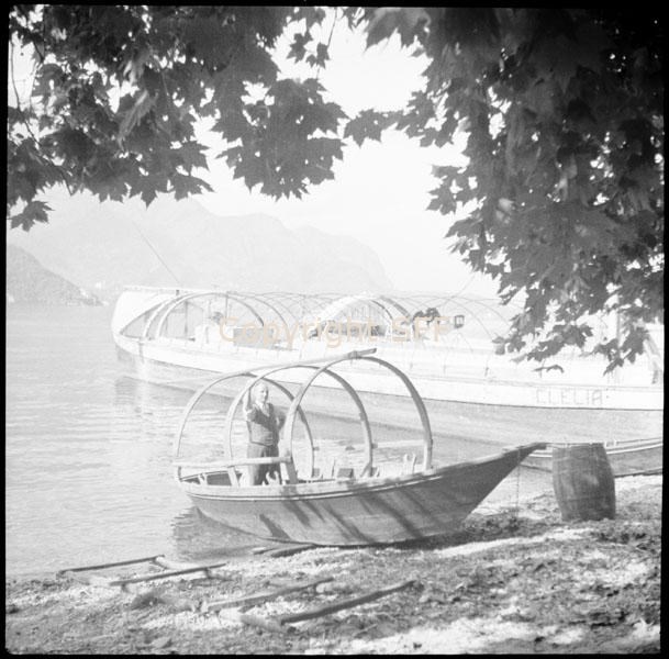Imbarcazione da pesca tirata a riva sul Lago di Como