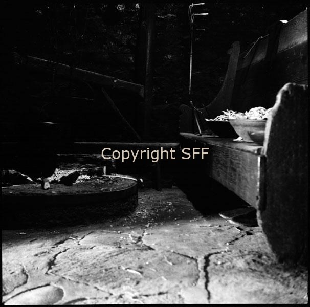 Interno a Rasura: antico focolare e banco presso il fuoco