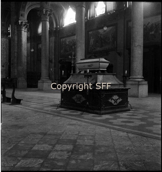Interno della Basilica di Magenta: apparato per esequie