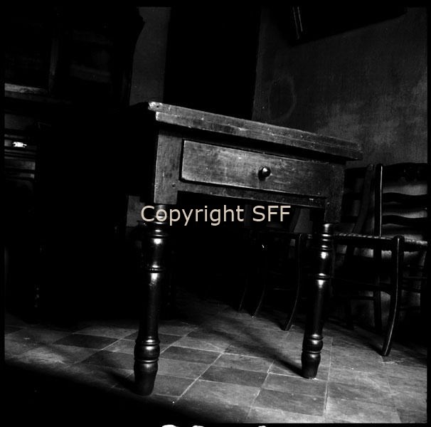 Madia con coperchio girevole: particolare del lato con cassetto