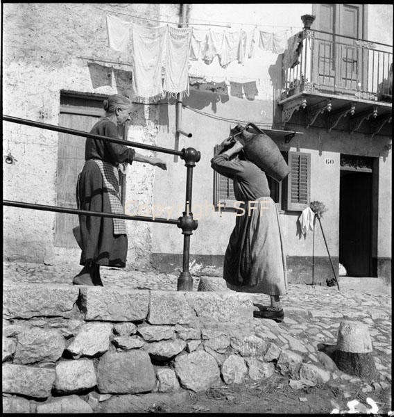 Ritratto di donna che porta sulla schiena una quartara utilizzata per la raccolta e la conservazione dell'acqua