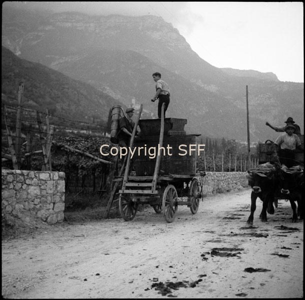 Pigiatura sul carro: ragazzi in posa ad Avio di Trento