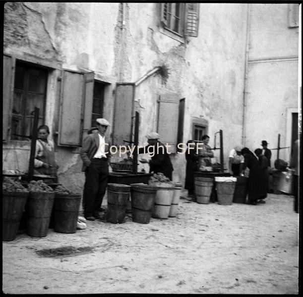 - Vendita di uva nelle brente (bigoncia in legno a forma di cono che si carica sulle spalle o sul basto dell'asino utilizzata in questo caso per il trasporto dell'uva) al mercato