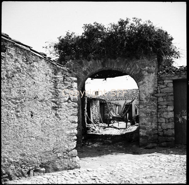 Portale in pietra con copertura vegetale