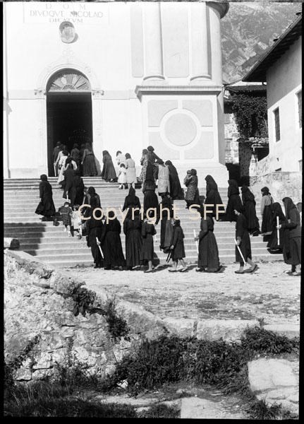 Donne in processione mentre salgono le scale della chiesa di San Nicolò Vescovo a Poffabro