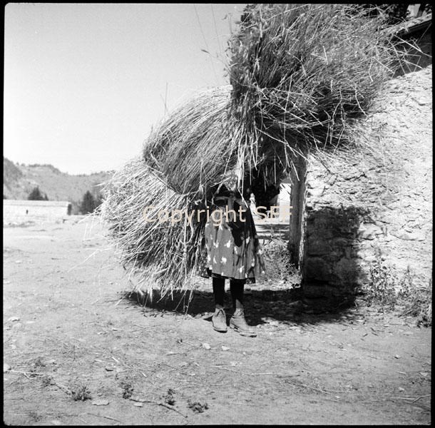 Ragazza in posa con un carico di segale sulle spalle