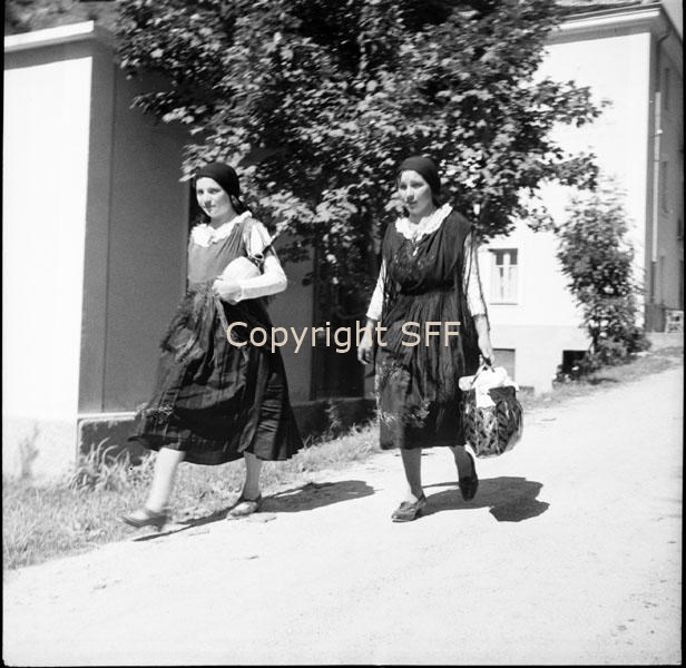 - Ritratto di due ragazze che indossano il costume locale riprese all'uscita della messa domenicale
