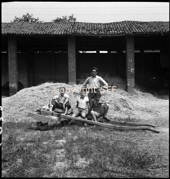 Ragazzi in posa con un rullo per terreno