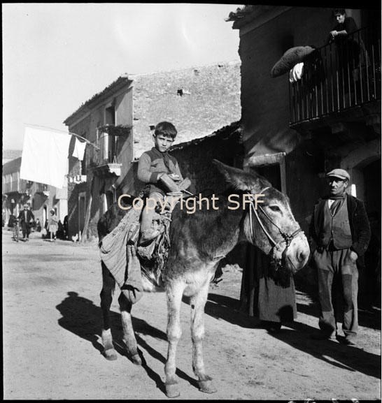 Ritratto - Bambino su asino - Strumenti del lavoro - Basto - Bisacce