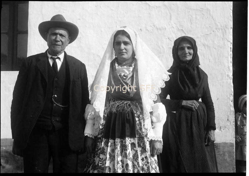 Ritratto dell'informatore con moglie e nipote in abito da sposa