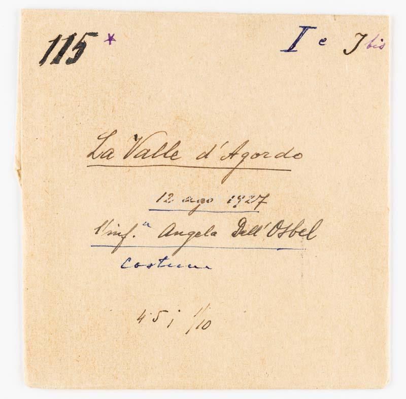 Ritratto dell'informatrice Angela Dell'Osbel in costume a La Valle Agordina
