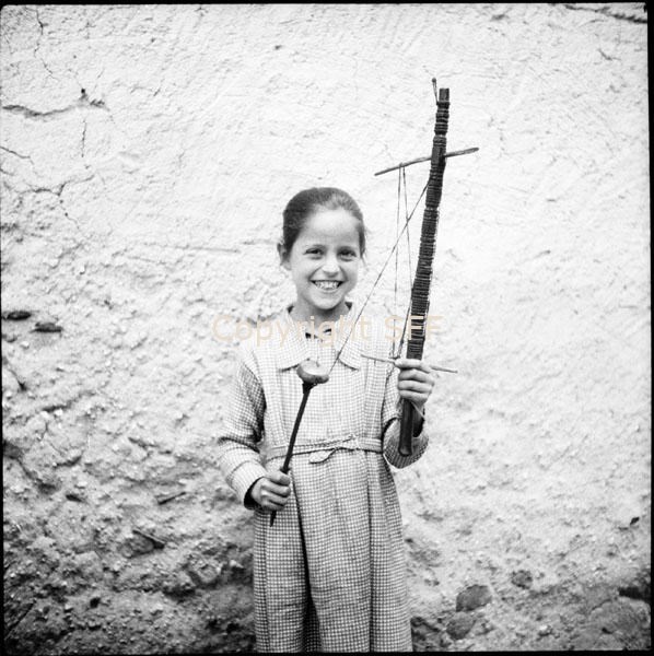 Ritratto di bambina con un attrezzo per la tessitura