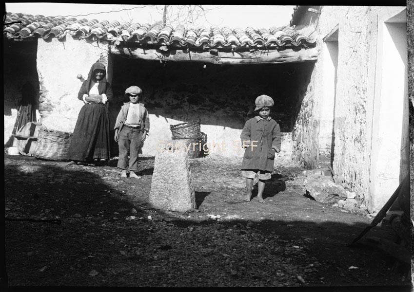 Ritratto di bambini con pietra usata come trebbia