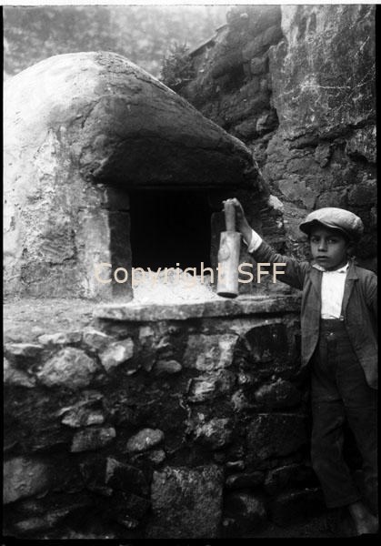 Ritratto di bambino accanto a maglio e forno