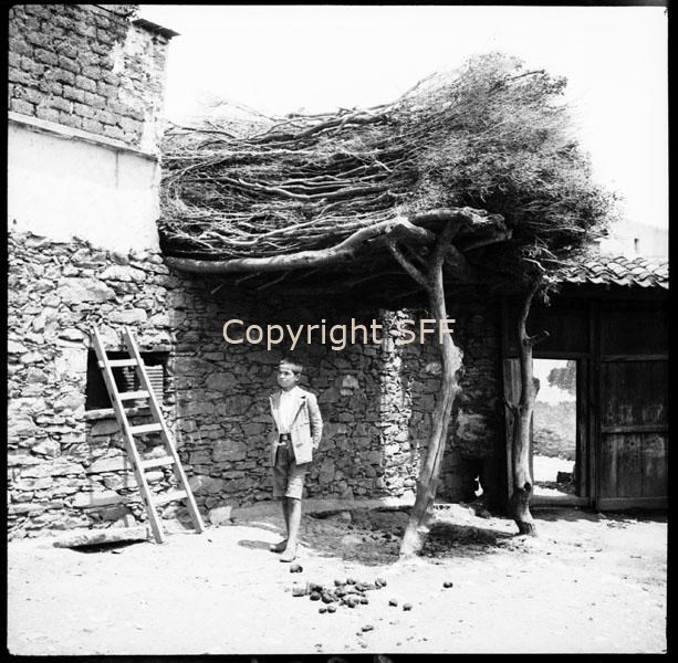 Ritratto di bambino al di sotto di un deposito di legna