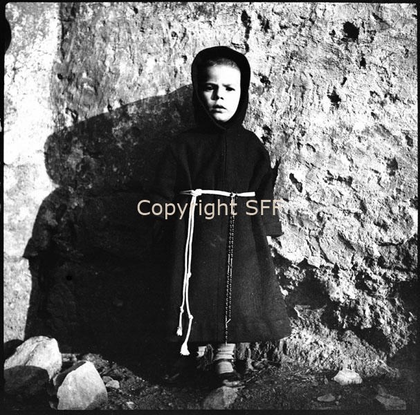 Bambino che indossa l'abito da frate a causa di un voto religioso fatto dai genitori